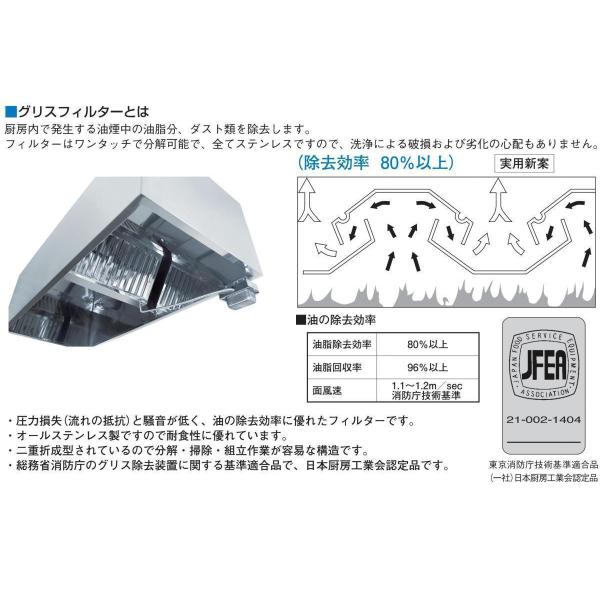 ・総務省消防庁のグリス除去装置に関する基準適合品で、日本厨房工業界認定品です。