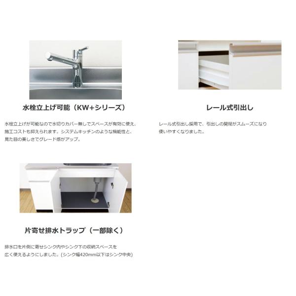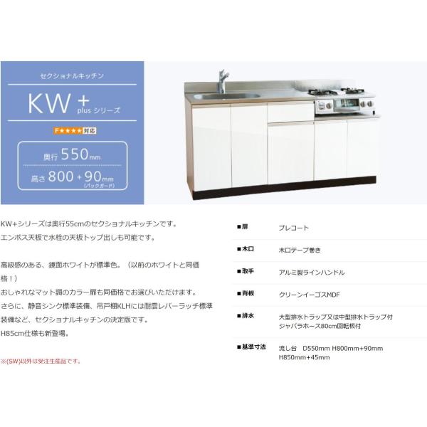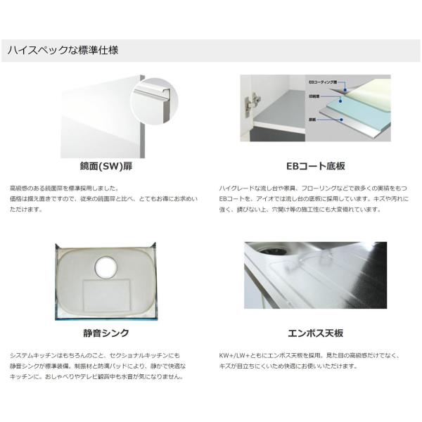 エリア限定配送無料 ガス台付流し台 KW-1500SG アイオ産業 標準鏡面扉スノーホワイト色 W1500(900+600)mm×D550mm×H800+90/620mm