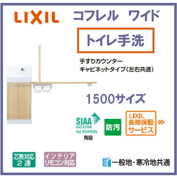 LIXIL INAX トイレ手洗い コフレルワイド 壁付 1500サイズ YL-DA83STA15E 自動水栓 手すりカウンターキャビネット 寸法 1500×200×1332mm