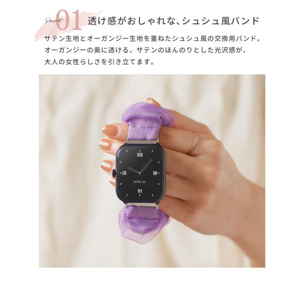サテン生地とオーガンジー生地を重ねたシュシュ風の交換用バンド。