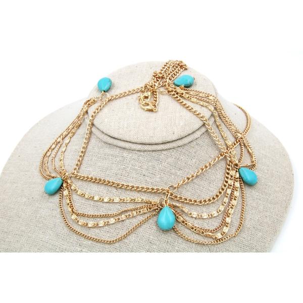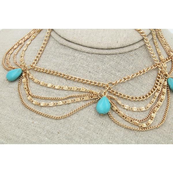 チェーン ティアラ ボディチェーン シャイニング ヘア ジュエリー ヘアバンド 髪飾り ターコイズ ゴールド