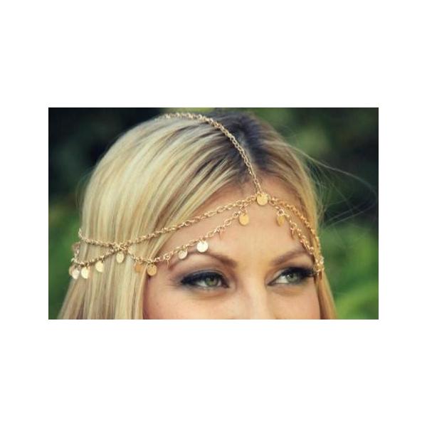 チェーン ティアラ ボディチェーン シャイニング ヘア ジュエリー ヘアバンド 髪飾り タッセル ゴールド