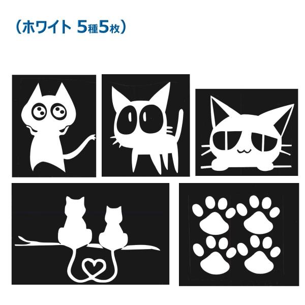 猫 ねこ キャット カー ステッカー 車用 デカール シール 追突 あおり 防止 ドア 窓 壁 (5種5枚セット)