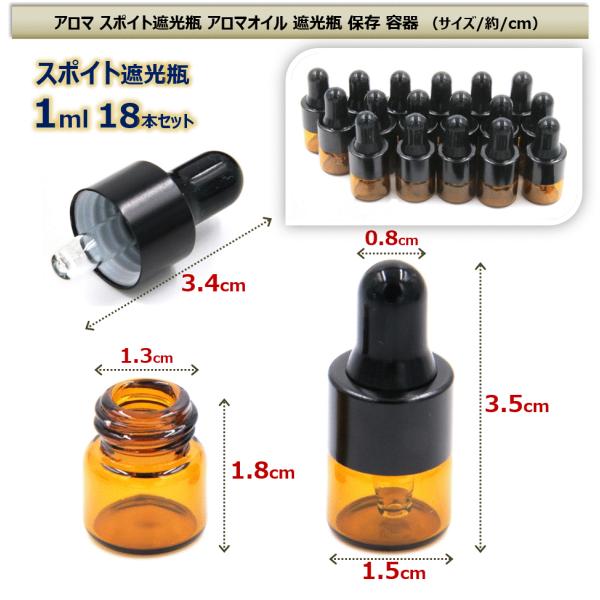 アロマ スポイト遮光瓶 アロマオイル 遮光瓶 保存 容器 小分け 詰め替え 香水 ボトル 1ml 18本セット