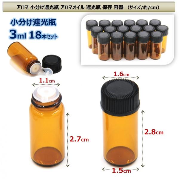 アロマ 小分け遮光瓶 アロマオイル 遮光瓶 保存 容器 詰め替え 香水 ボトル 耐熱ガラス 3ml 18本セット