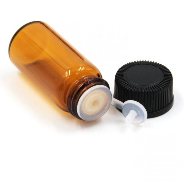 小分け瓶の中栓は付属の専用オープナーを利用して綺麗に外れるので詰め替えも簡単。きっちり密閉できるボトルキャップで液漏れや液だれを防ぎ、遮光効果の高い“茶色“ボトルで紫外線からの品質劣化を抑えます。