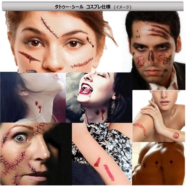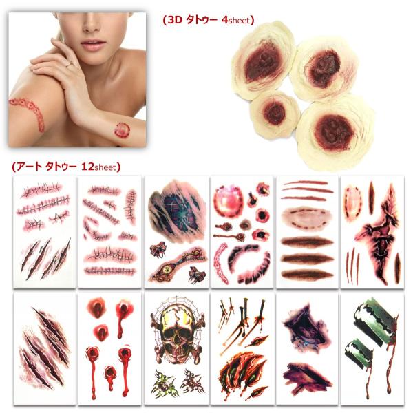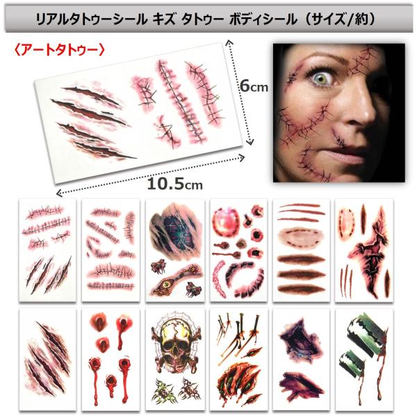 リアルタトゥーシール キズ タトゥー ボディシール ステッカー 特殊メイク 切り傷 ホラー ゾンビ ハロウィン タトゥーシール 16種16枚セット