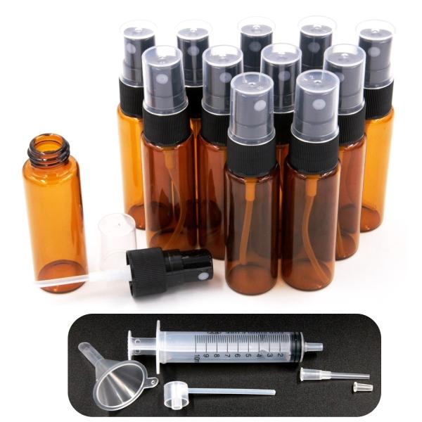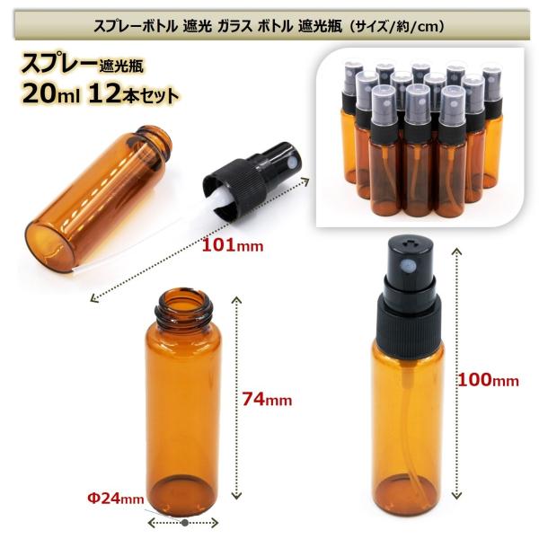 スプレーボトル 遮光 ガラス ボトル 遮光瓶 霧吹き スプレー容器 香水 次亜塩素酸 遮光性 ガラス瓶 ガラス容器 紫外線 遮光瓶ガラス(20ml 12本セット)