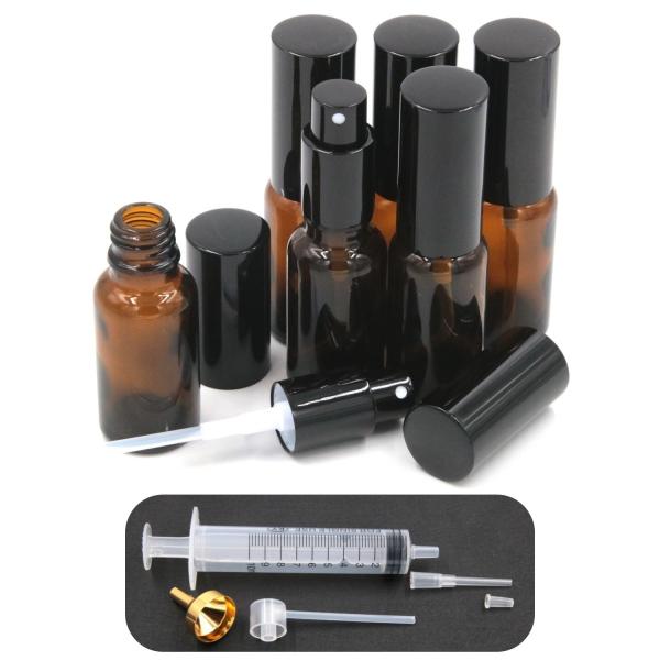 付属の詰め替え用シリンジ(注射器)やノズルヘッド、漏斗を利用して漏れなく補充、充填で詰め替えも簡単。きっちり密閉のボトルキャップが液漏れや液だれを防ぎ、高い遮光効果で紫外線からの品質劣化を抑えます。