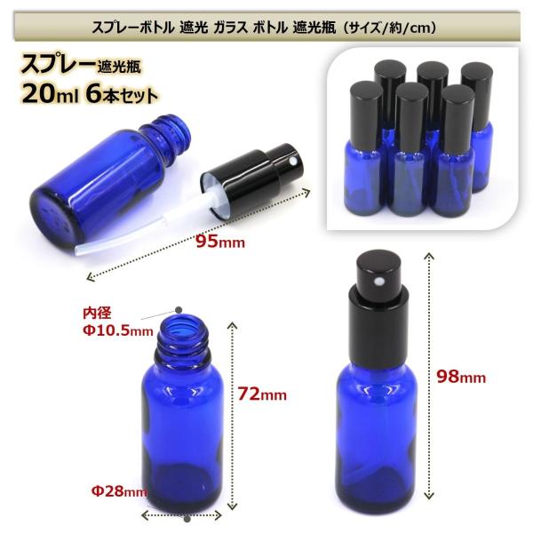 スプレーボトル 遮光 ガラス ボトル 遮光瓶 霧吹き スプレー容器 香水 次亜塩素酸 遮光性 ガラス容器 紫外線 遮光瓶ガラス(20ml 6本セット/茶色・藍色・緑色)