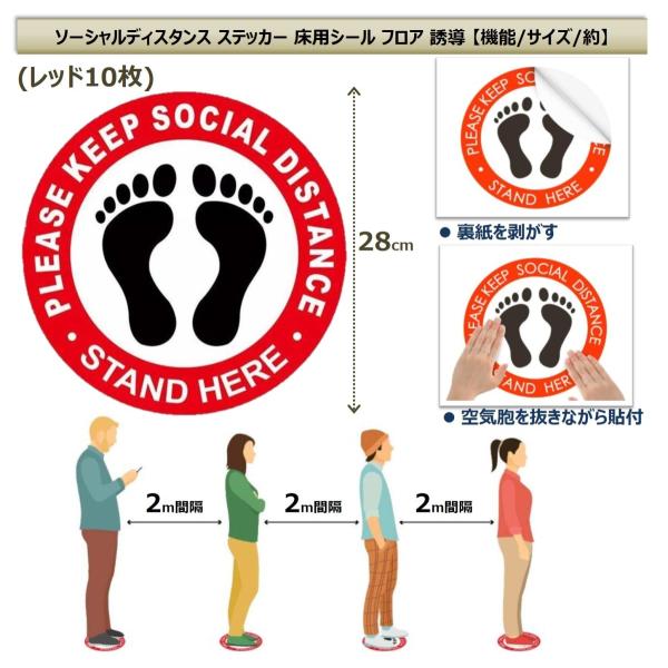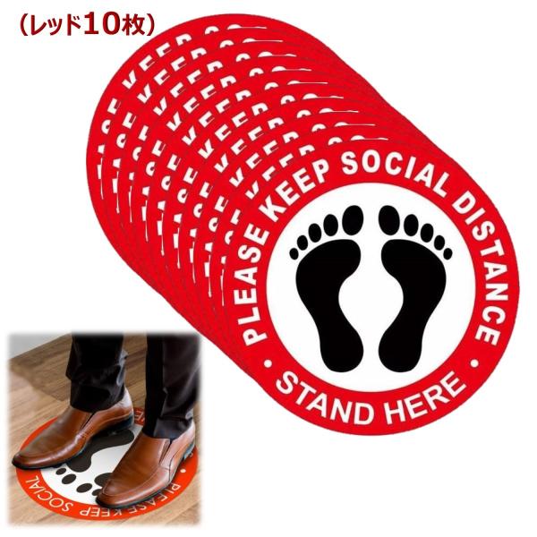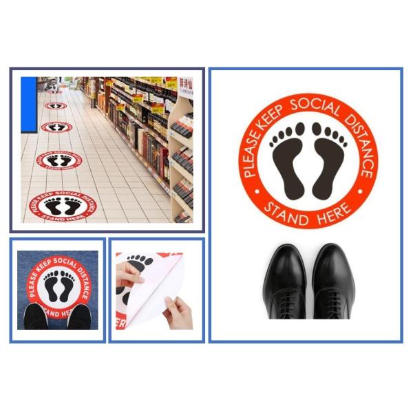 ソーシャルディスタンス ステッカー 床用シール フロア 誘導 ウォール シール サインプレート 標識 サイン 距離マーカー 足形 足型丸 社会的距離