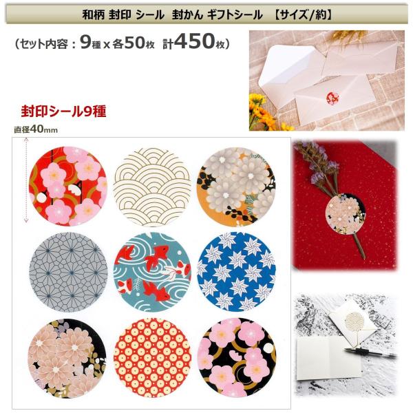 ギフトシール 招待状 案内状 お礼 感謝 Thank you シール ラベル ステッカー 封印 封かん ギフト ラッピング プレゼント(和柄9種 450枚)