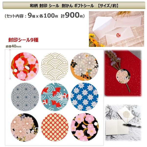 ギフトシール 招待状 案内状 お礼 感謝 Thank you シール ラベル ステッカー 封印 封かん ギフト ラッピング プレゼント(和柄9種 900枚)