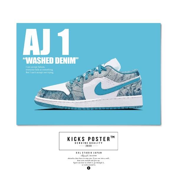 エアジョーダン1ロー ウォッシュドデニム 【レビュー特典♪ステッカープレゼント/フレーム付き/送料無料】スニーカーポスター