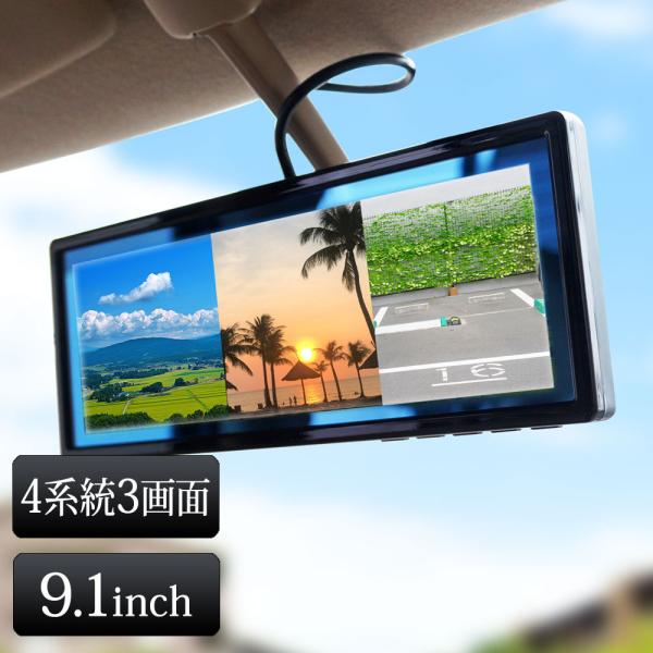 バックミラーモニター 3画面 ルームミラーモニター 画面分割 トラック バックカメラ 12V 24V対応 あすつく 送料無 B393
