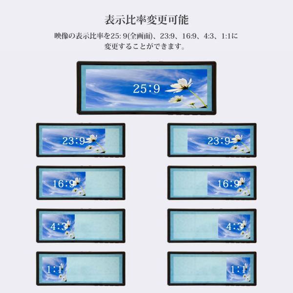 ・映像の表示比率を25: 9(全画面)、23:9、16:9、4:3、1:1に変更することができます。
