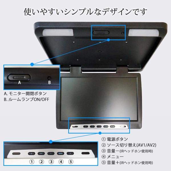 フリップダウンモニター 15.6インチ 高画質 赤外線ヘッドホン 接続可能 送料無 F1560