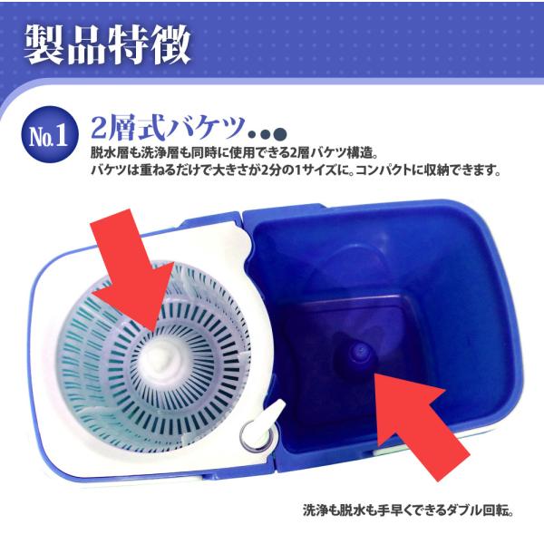 回転モップ モップ替え 2個付 トルネード スピンモップ 洗浄二槽式 脱水 バケツ 水切り 耐久性 送料無 XH702