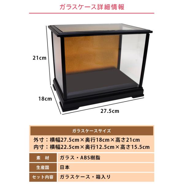 人形ケース ガラスケース 組み立て式 コンパクト ケース 内寸(間口22.5cm×奥行12.5cm×高さ15.5cm) 雛人形 ひな人形 五月人形 兜飾り ディスプレイ