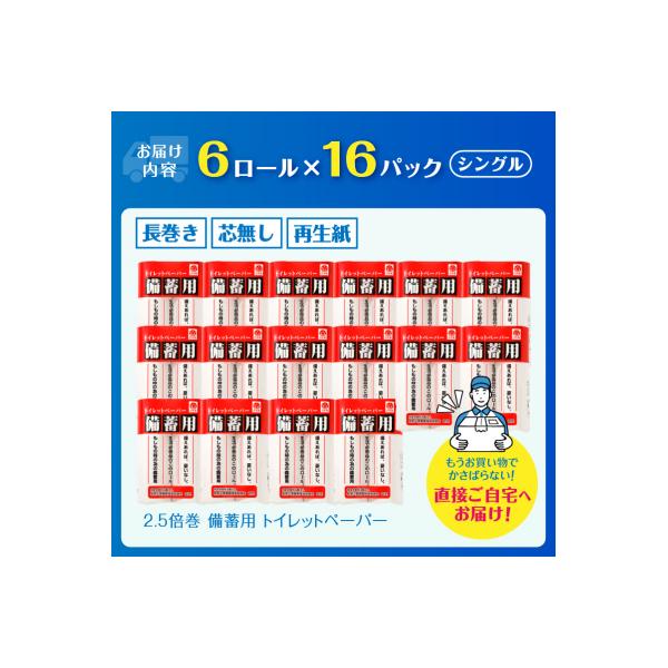 ふるさと納税 富士市 備蓄用トイレットペーパー シングル 96ロール150m 芯なし 2.5倍巻き