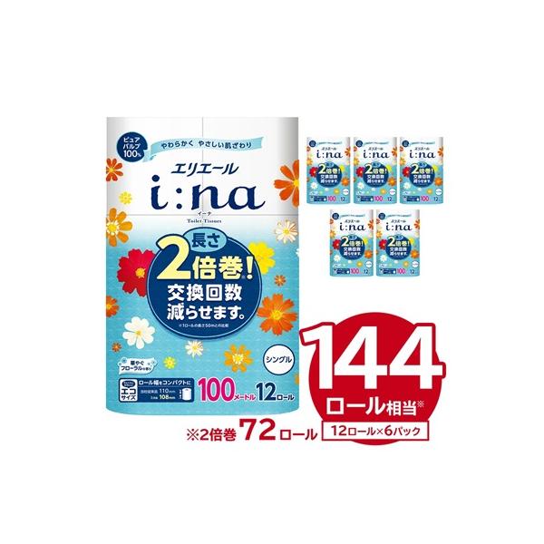ふるさと納税 可児市 エリエール i:na(イーナ)トイレットティシュー 12Rシングル(100m巻)12ロール×6パック