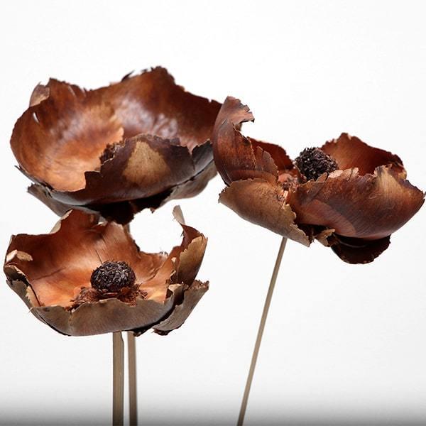 木の実や皮、茎などの自然素材を組み合わせて作ったお花です。