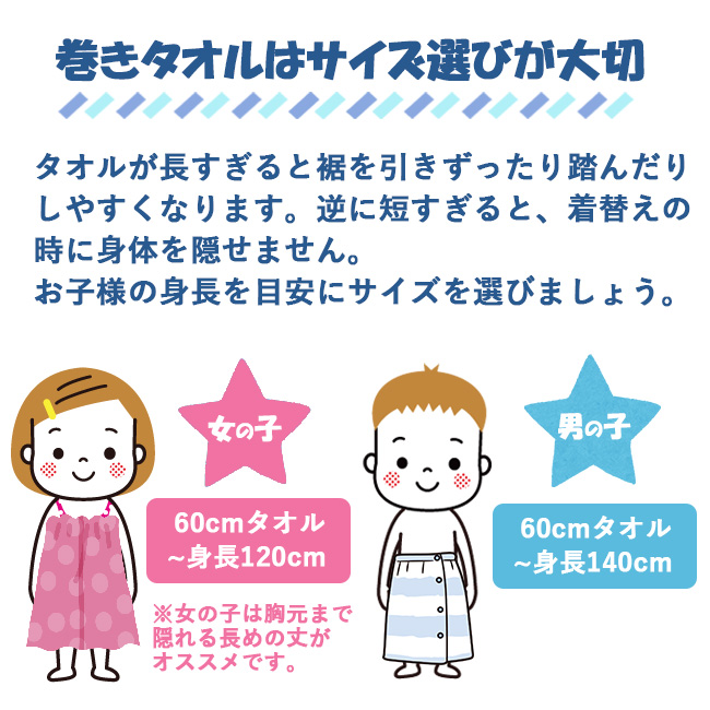 巻きタオル ラップタオル 60cm 子供用 キッズ 小学生 キャラクター ポケモン ディズニー プリンセス パウパトロール トミカ 恐竜 プール スイミング 綿100%