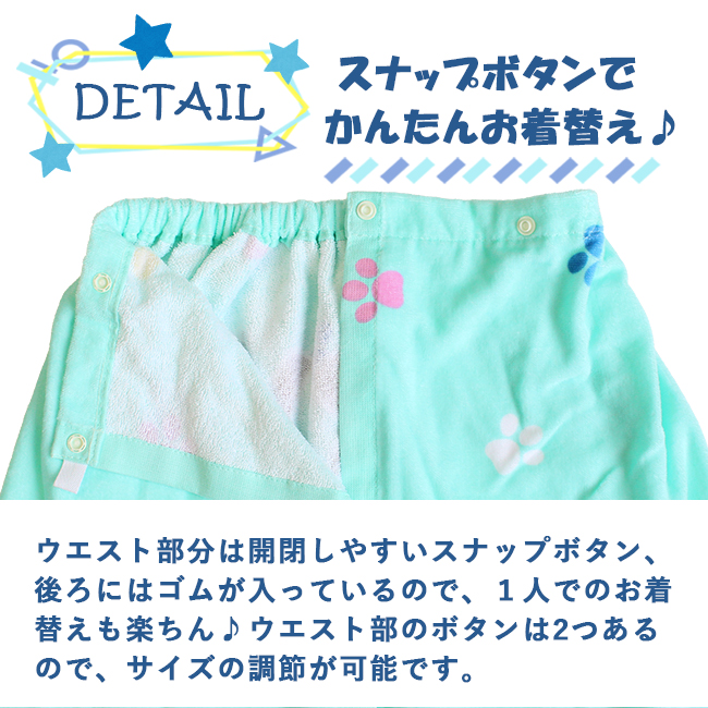 スナップボタンとギャザーで使いやすい キャラクター 巻きタオル