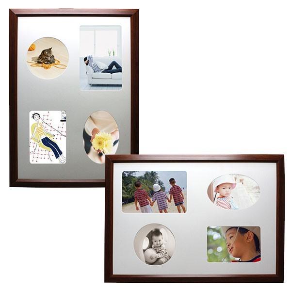 フォトフレーム A4 ワイド四切 多窓兼用 マット2枚付き 壁掛けフォトフレーム・額縁・写真立て ブラウン ナチュラル パールホワイト 万丈