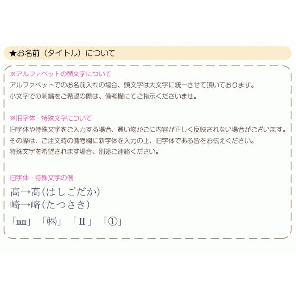 ・一度名入れした製品の返品、又は名入れ中の変更追加等はできませんのでご了承下さい。