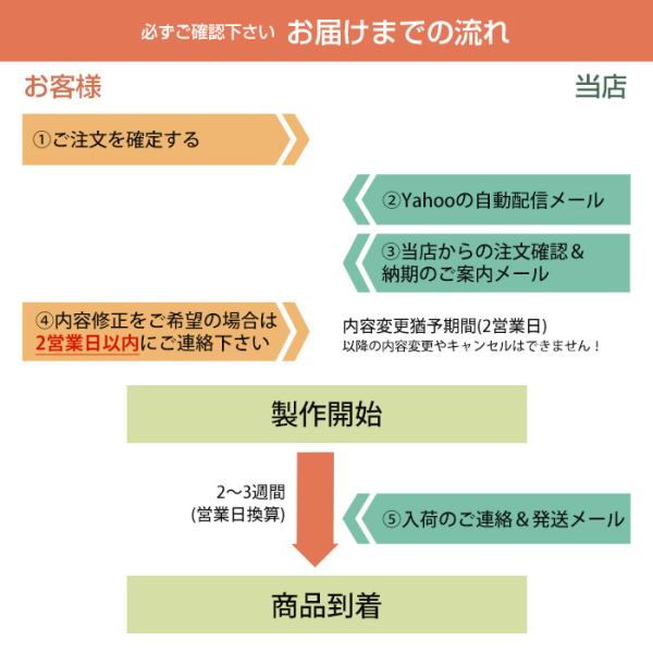 ・ご注文確認後2営業日で作成を開始します。名入れ内容の修正/変更は2営業日以内にご指示ください。