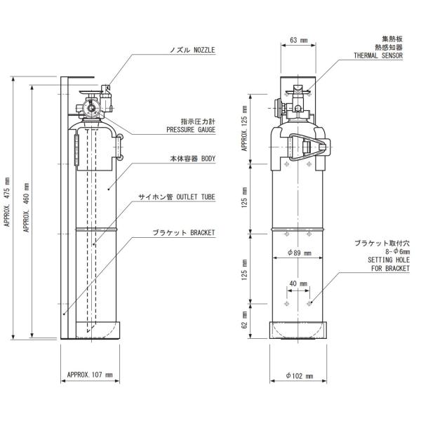 自動的に粉末消火剤を水平扇状に放射する小型船舶用自動拡散型粉末消火器です