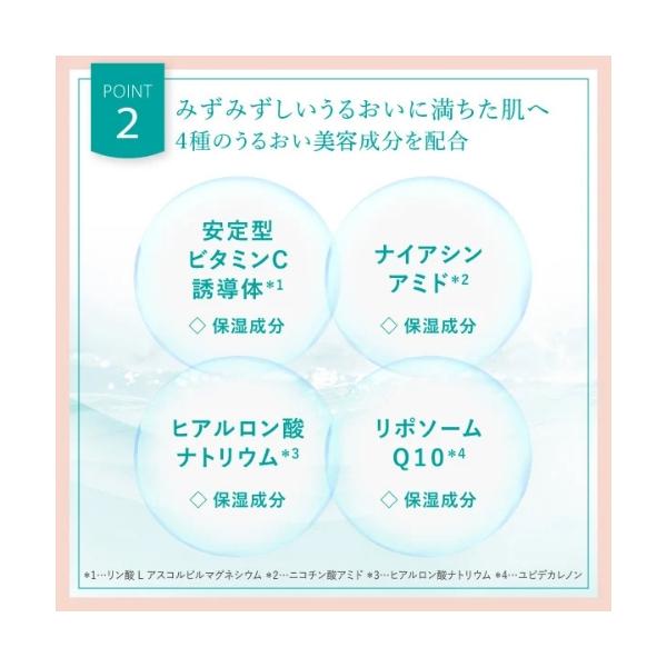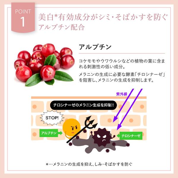 美白有効成分アルブチンを配合で、くすみを抑えた透明感ある肌に。