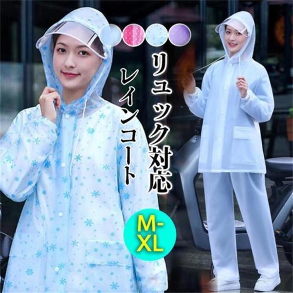 レインコート レディース 上下セット 自転車 バイザー レインウェア ポケット付き バイク 無地 花柄 厚手 雨合羽 梅雨対策 雨具 おしゃれ 通学