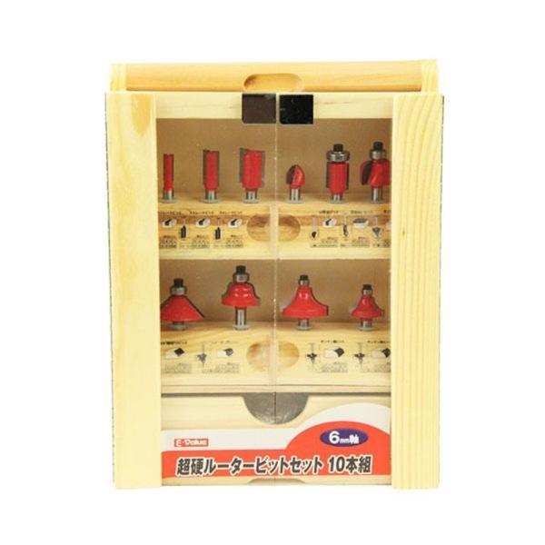 E-value(イーバリュー) 超硬ルータービットセット [作業工具 先端工具 電動トリマー工具 ビットセット ルータービット] ERB6-10R 爆買