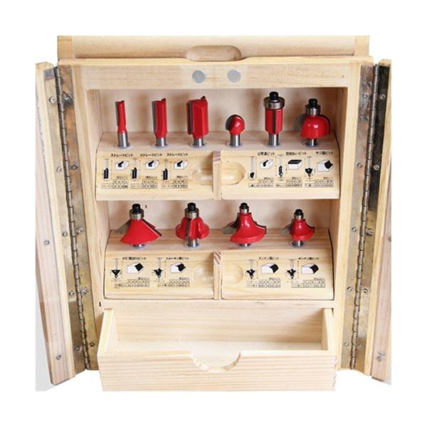 ●6mm軸の超硬ルータービットセット10本組です●おしゃれな木製BOX付きで、ビットの保管整理に便利です●使用頻度の多いビットを揃えています●木・合板・プラスチック・デコラに最適です