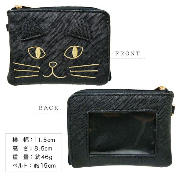 定期入れ(パスケース) ネコ顔 ポーチ兼用 リール付