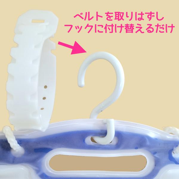 付属ベルトを外し、フックに付け替えて下さい。