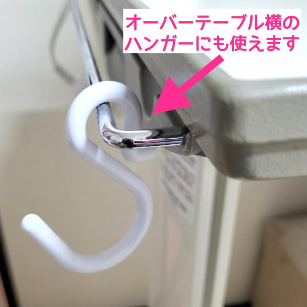 主にベッド柵に掛けて使い、たまに移動する時にサッとはずして持ち運べます。