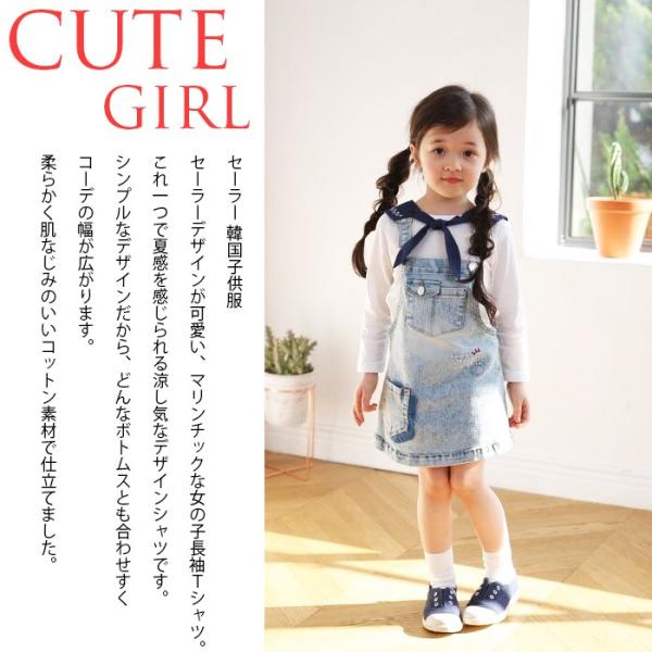セーラーデザインが可愛い、マリンチックな女の子長袖Tシャツ。