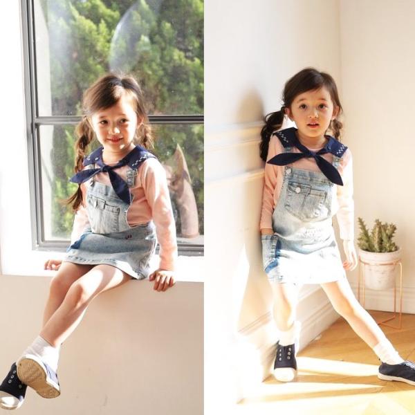 送料無料 女の子 薄手の長シャツ セーラー服シャツ 韓国子供服