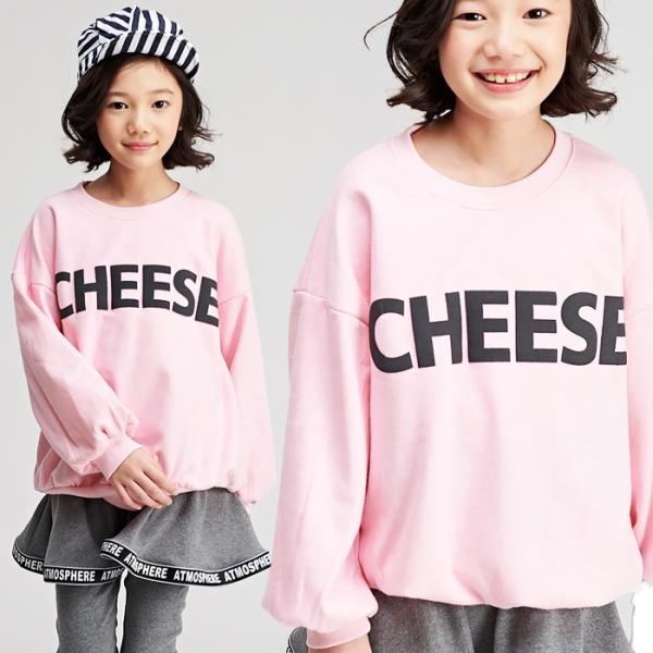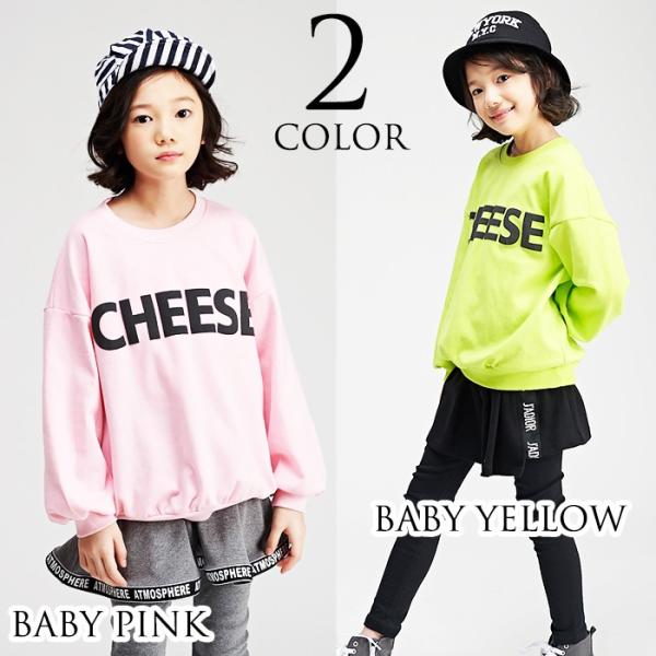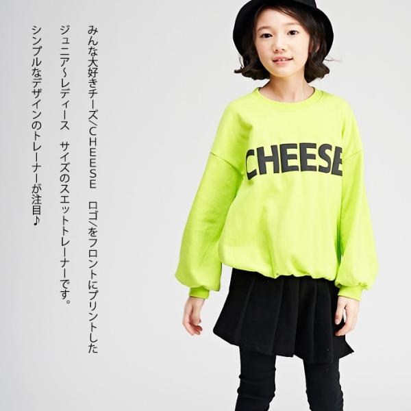 韓国ファッション トレーナー トップス ジュニア ロゴ トレーナー 蛍光カラー ロゴ CHEESE