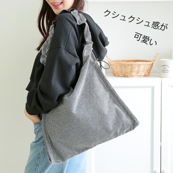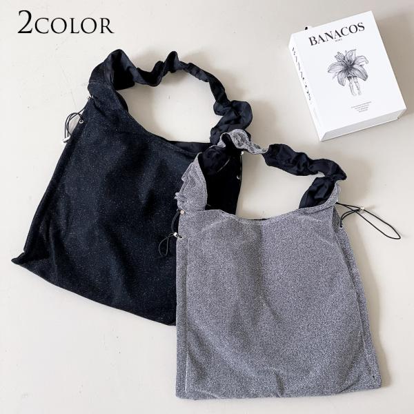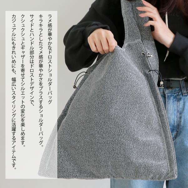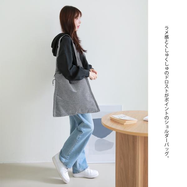 ラメ感とくしゅくしゅのドロストがポイントのショルダーバッグ。