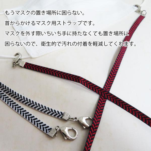 マスク ストラップ マスク おしゃれ 首掛け ネックストラップ 金属アレルギー対応 置き場所 ストラップ ストライプ ブラック レッド 首にかける