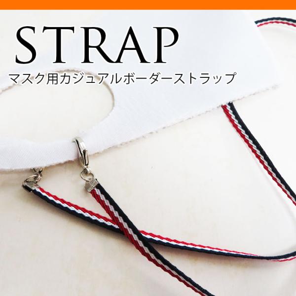 マスク ストラップ マスク おしゃれ 首掛け ネックストラップ 金属アレルギー対応 置き場所 ストラップ ボーダ柄 ブラック レッド 首にかける