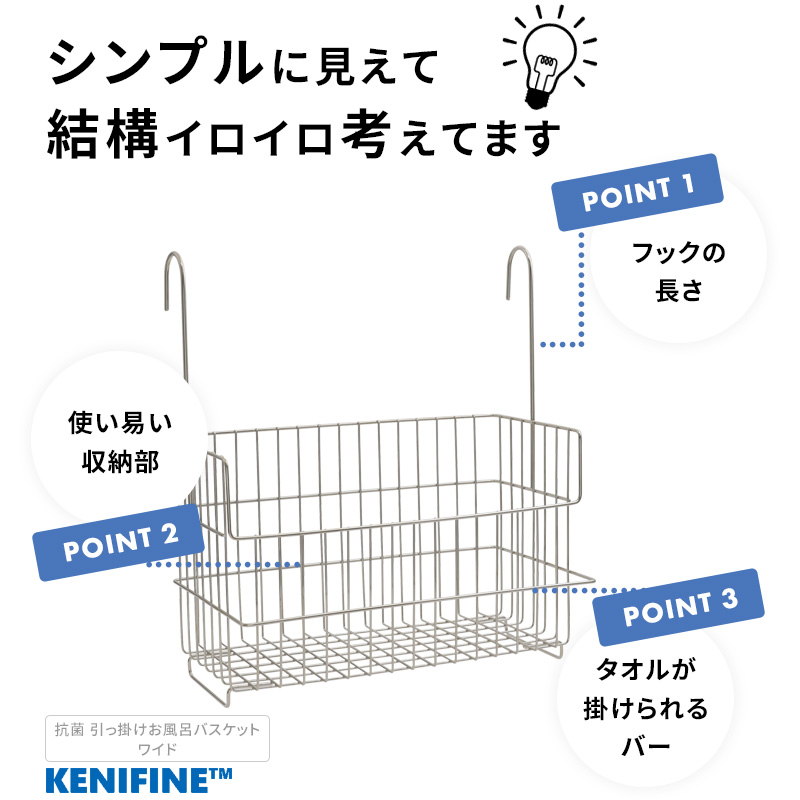 お風呂収納 抗菌 引っ掛けお風呂バスケット ワイド ステンレス