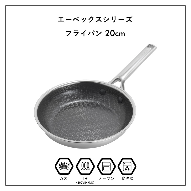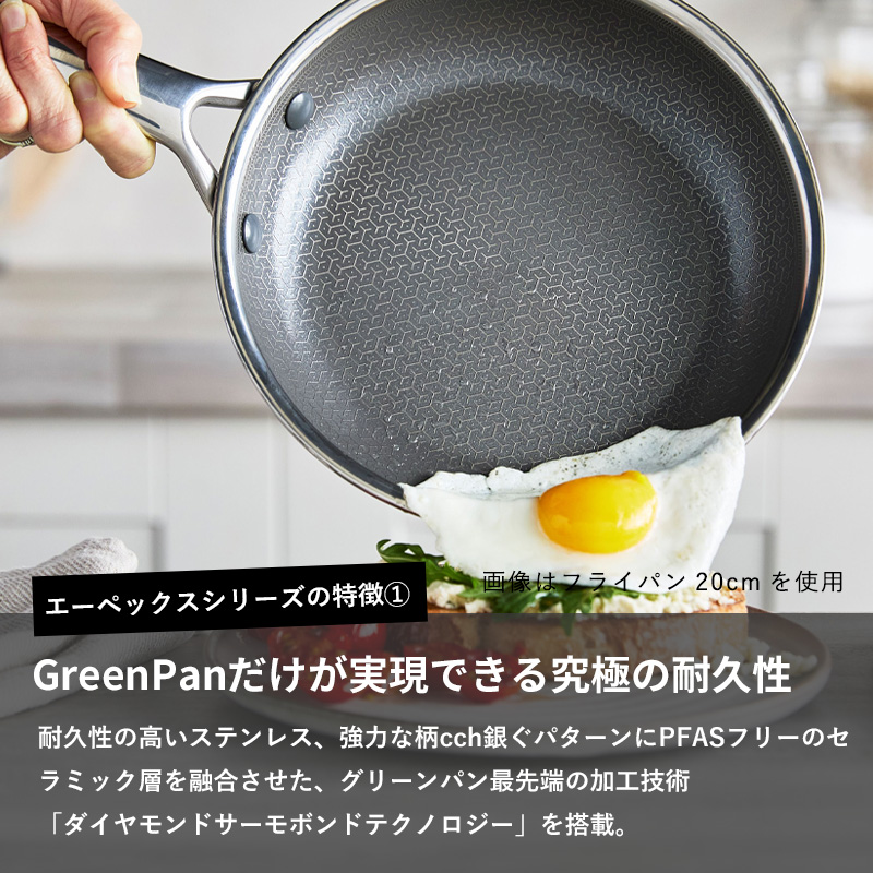 特典付 GREEN PAN グリーンパン エーペックス フライパン 20cm 安全 フッ素樹脂不使用 焦げ付かない オーブン対応 IH ガス 対応