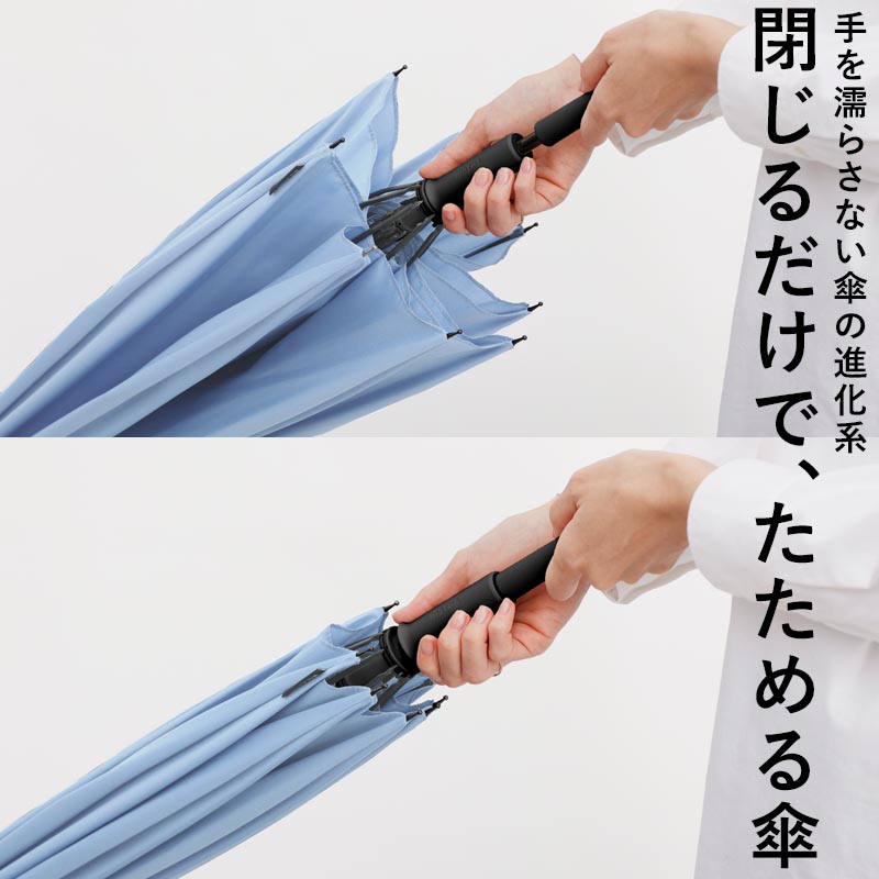最後に手で生地をまとめたり、ベルトで留める必要がないので、手を濡らさずたためます。