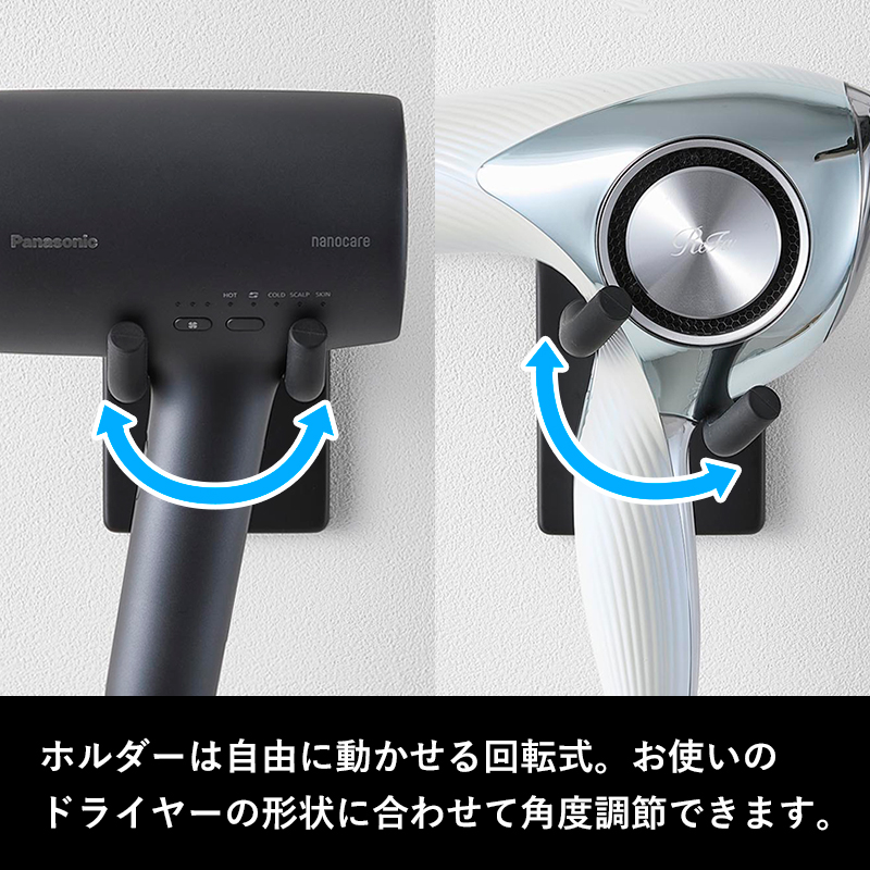 ホルダー部分を回転させることで様々な形状のドライヤーを収納可能です。