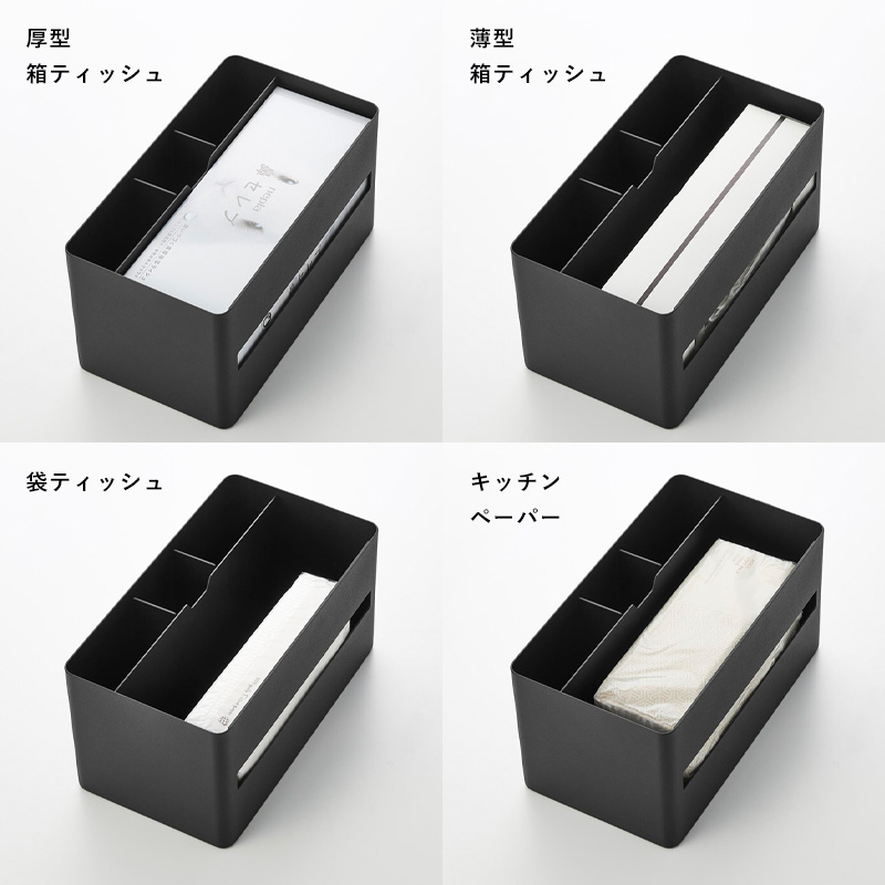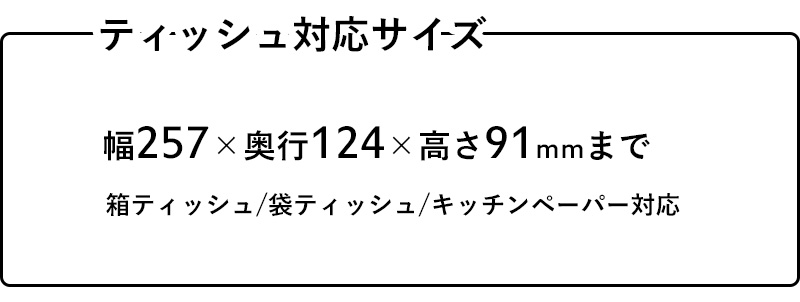 箱ティッシュはもちろん、袋ティッシュやキッチンペーパーなども収納できるので、暮らしのいろんなシーンで活躍してくれます。